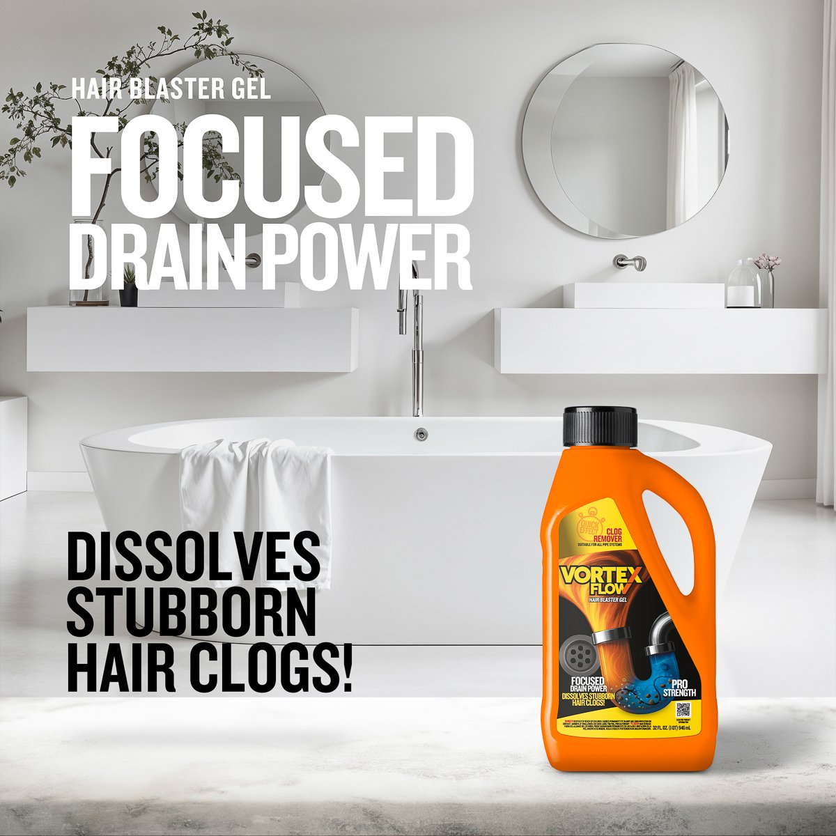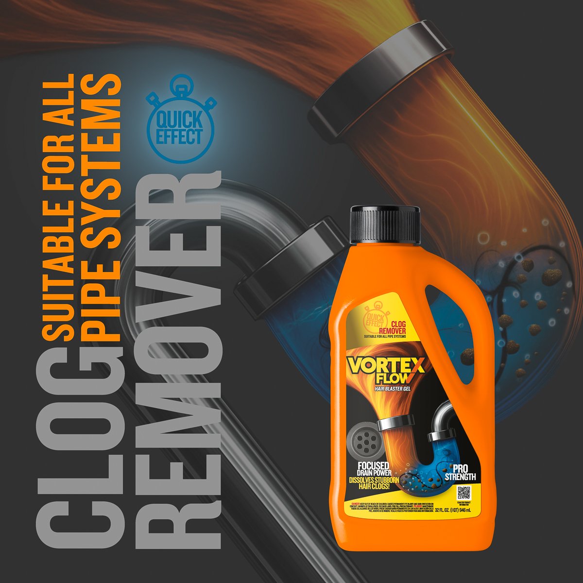 Vortex Flow Clog Remover delivers powerful performance to dissolve stubborn blockages and restore free-flowing drains. Its balanced formula penetrates deep into the clog to break down hair, grease, and soap scum effectively without damaging pipes.