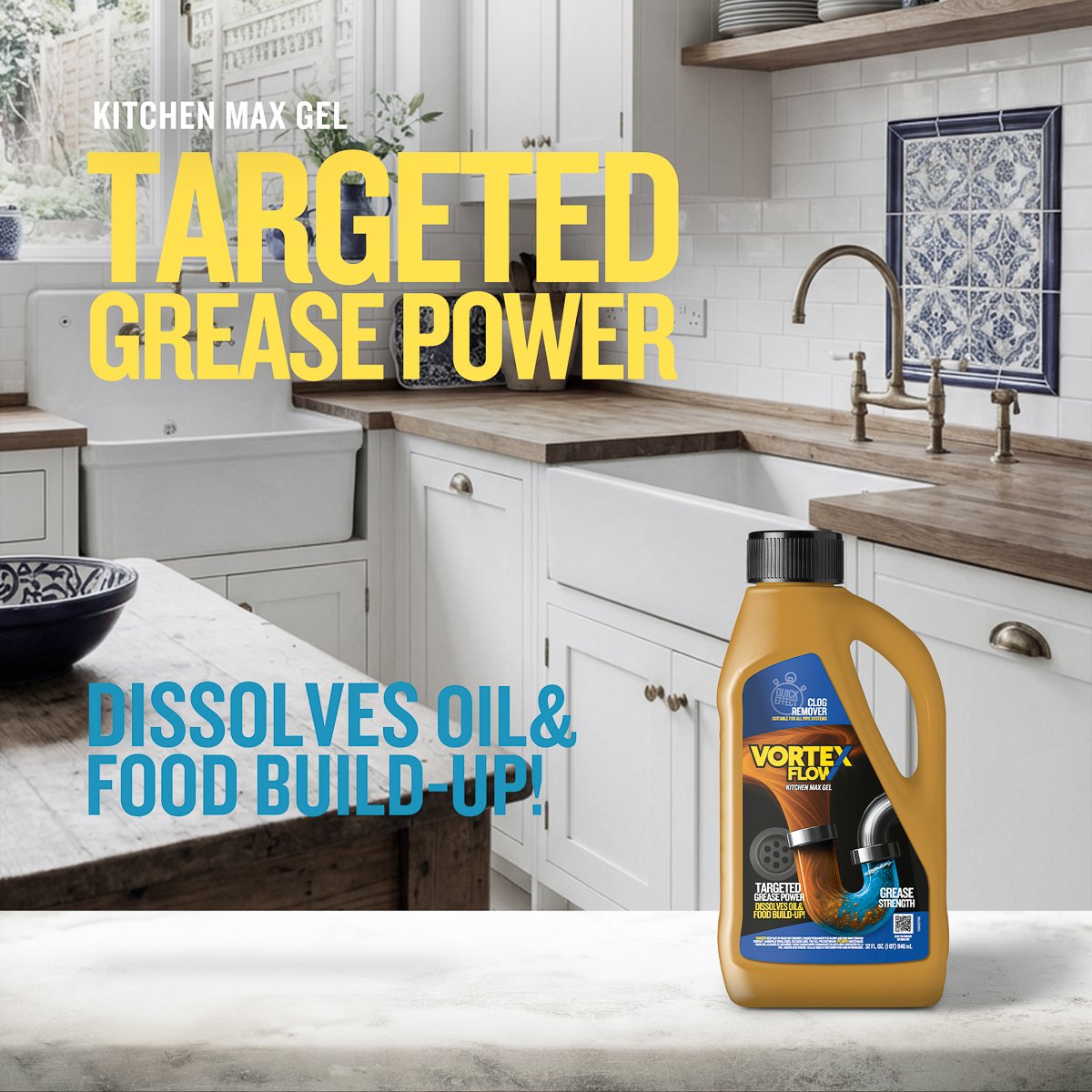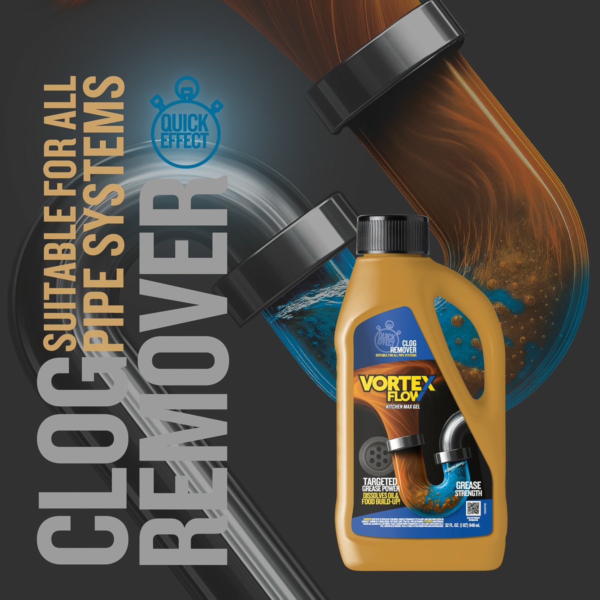 Vortex Flow Clog Remover delivers powerful performance to dissolve stubborn blockages and restore free-flowing drains. Its balanced formula penetrates deep into the clog to break down hair, grease, and soap scum effectively without damaging pipes.