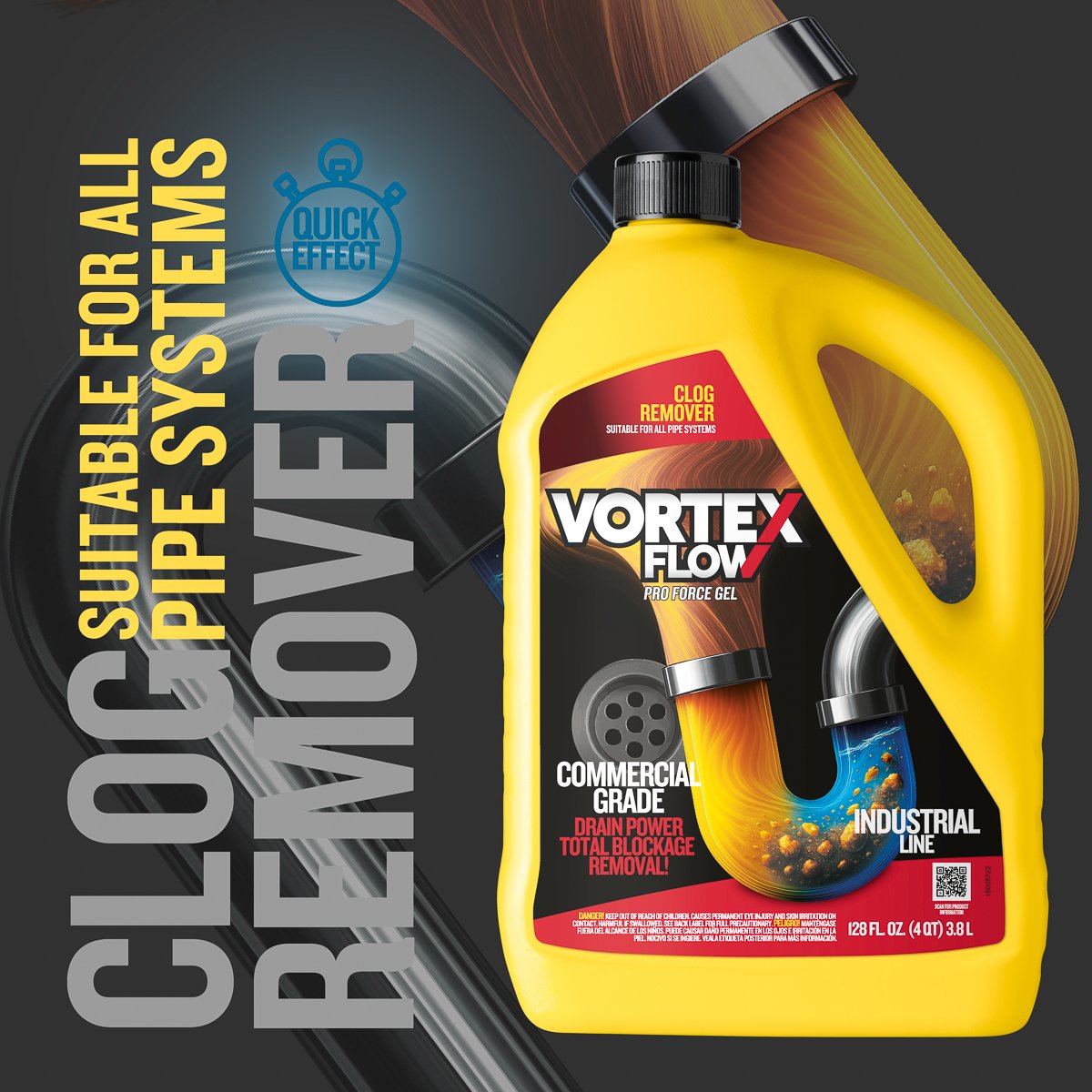 Vortex Flow Clog Remover delivers powerful performance to dissolve stubborn blockages and restore free-flowing drains. Its balanced formula penetrates deep into the clog to break down hair, grease, and soap scum effectively without damaging pipes.