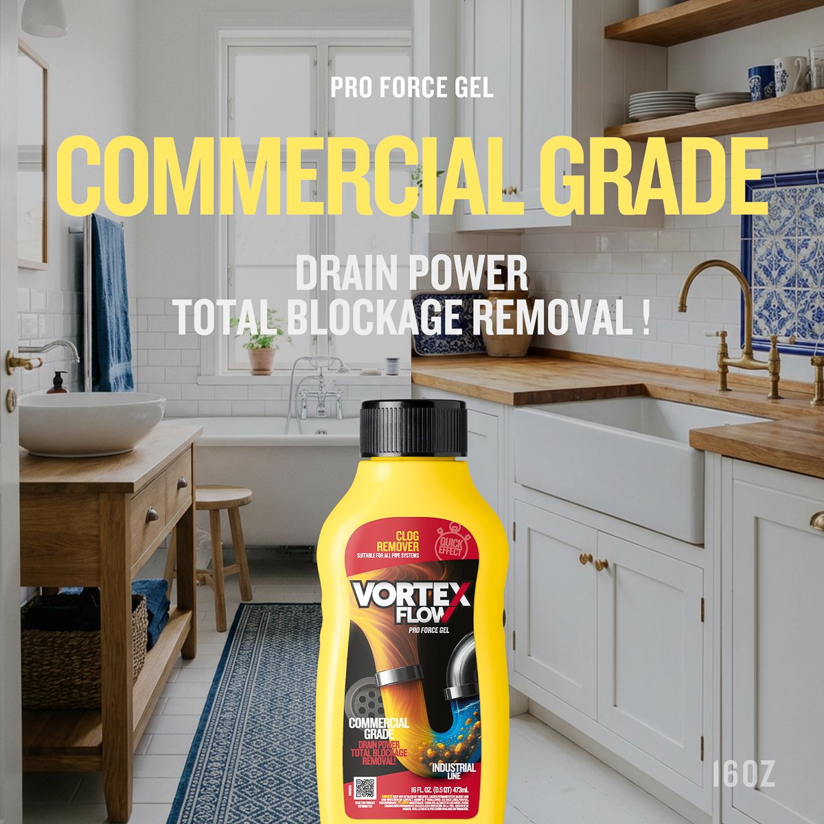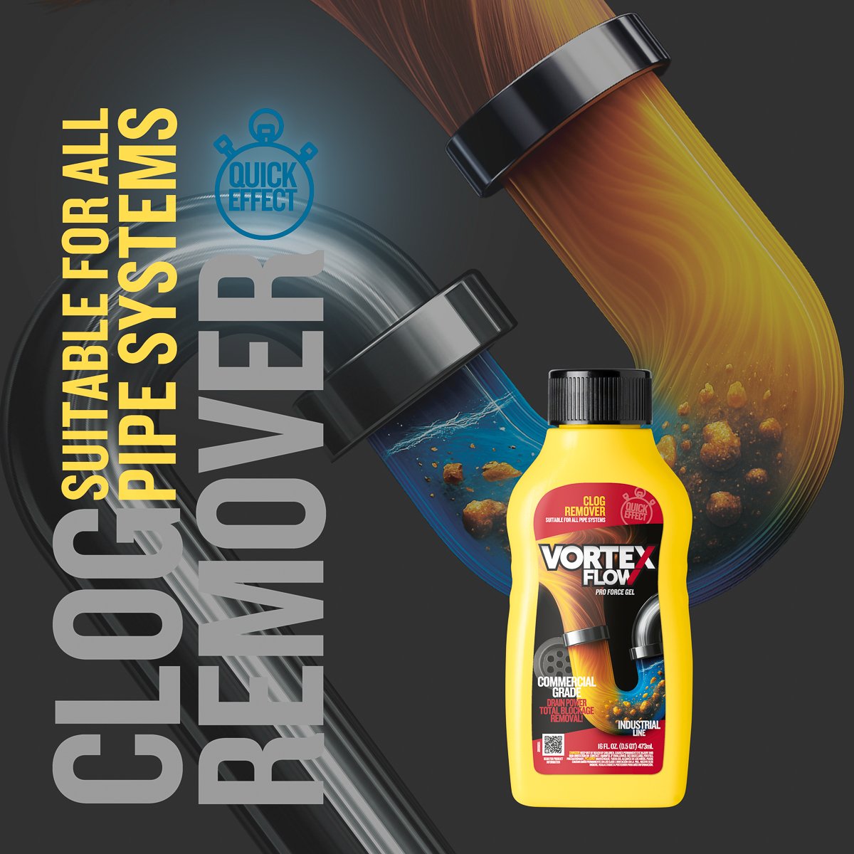 Vortex Flow Clog Remover delivers powerful performance to dissolve stubborn blockages and restore free-flowing drains. Its balanced formula penetrates deep into the clog to break down hair, grease, and soap scum effectively without damaging pipes.