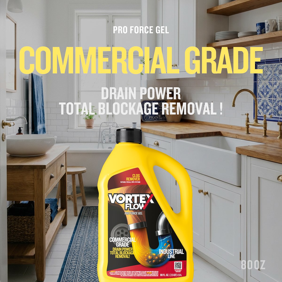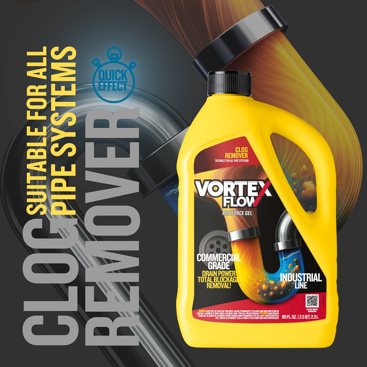 Vortex Flow Clog Remover delivers powerful performance to dissolve stubborn blockages and restore free-flowing drains. Its balanced formula penetrates deep into the clog to break down hair, grease, and soap scum effectively without damaging pipes.