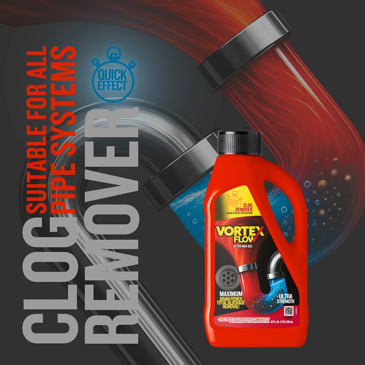 Vortex Flow Clog Remover delivers powerful performance to dissolve stubborn blockages and restore free-flowing drains. Its balanced formula penetrates deep into the clog to break down hair, grease, and soap scum effectively without damaging pipes.