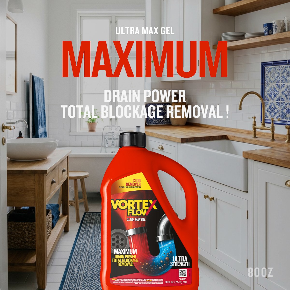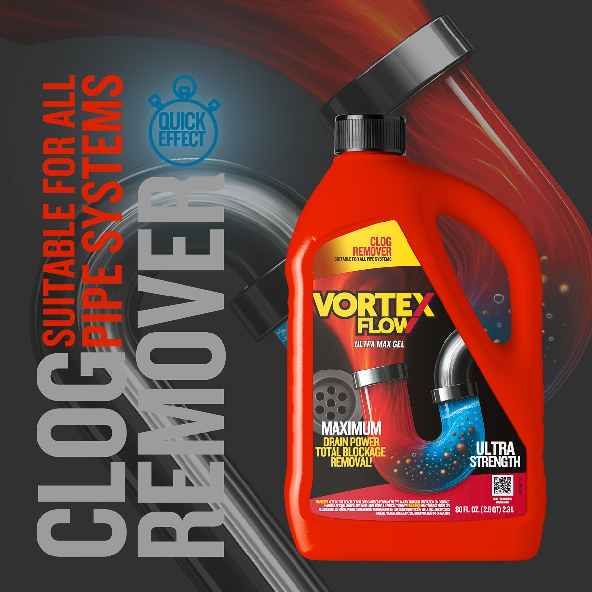 Vortex Flow Clog Remover delivers powerful performance to dissolve stubborn blockages and restore free-flowing drains. Its balanced formula penetrates deep into the clog to break down hair, grease, and soap scum effectively without damaging pipes.